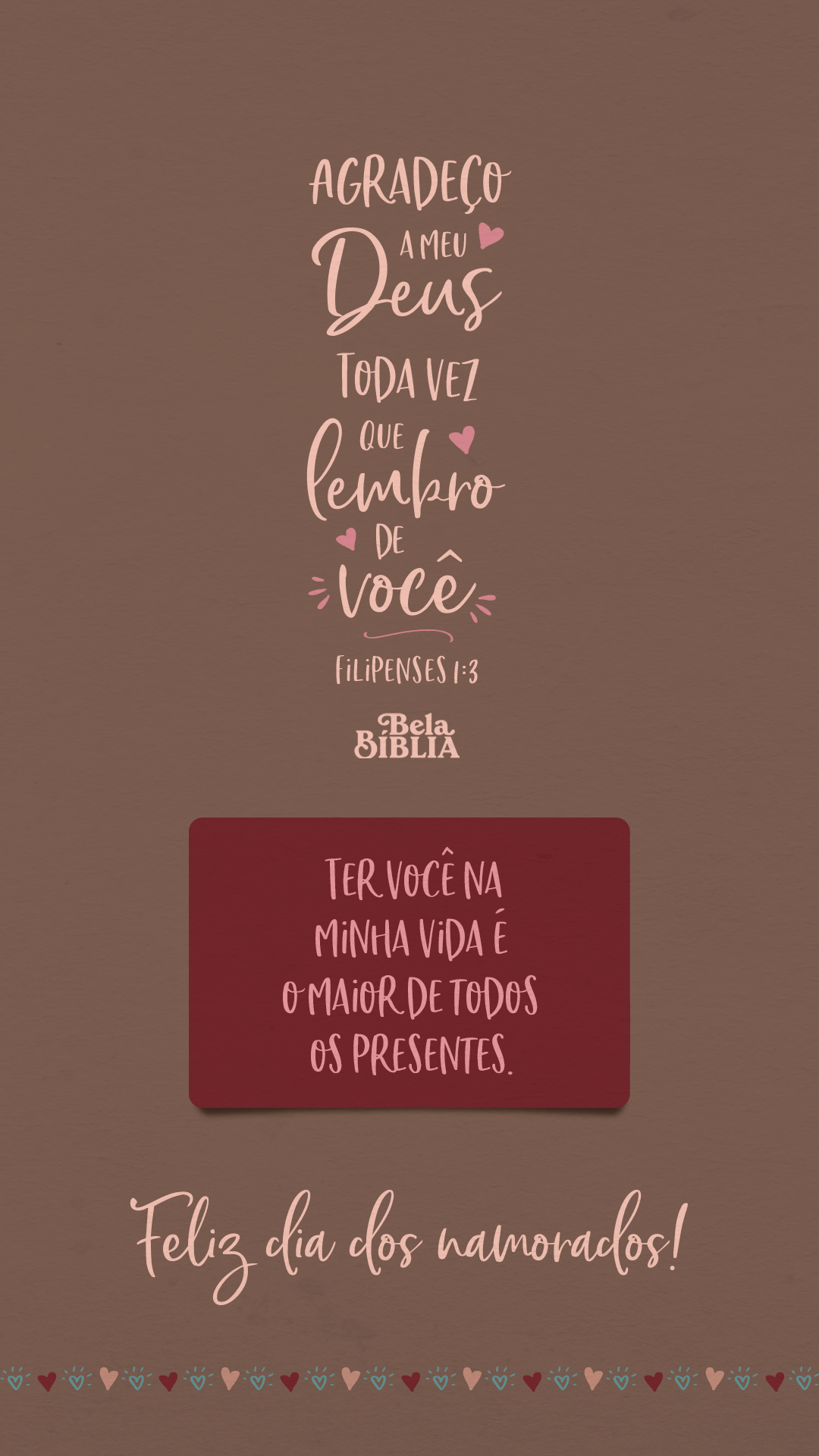 Se você também quer comemorar o dia dos namorados com o poder e a poesia da Bíblia, aqui vão seis ideias. Faça o download, envie pro seu amor e compartilhe em suas redes.