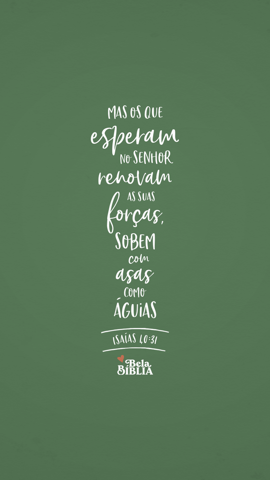 mas aqueles que esperam no Senhor renovam as suas forças. Voam bem alto como águias; correm e não ficam exaustos, andam e não se cansam. (NVI)